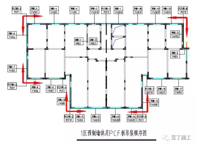 提前策劃單位工程標準層預(yù)制構(gòu)件的吊裝順序,構(gòu)件出廠順序與吊裝順序一致,保證現(xiàn)場吊裝的有序進行。
